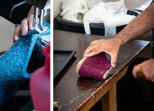 We use 100% pure and natural wool for all of our slippers. The slippers have either a sole of semi-vegetable tanned calfskin or FSC natural rubber.