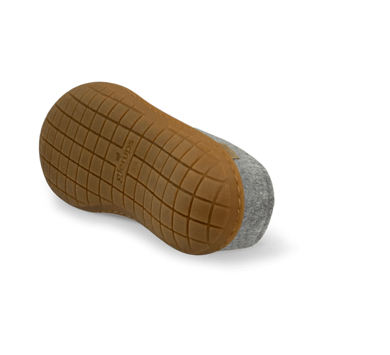 Felt slipper of 100% pure natural wool in the classic color grey with a sole of natural rubber.