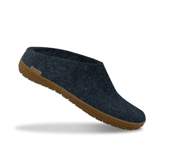 Felt slipper of 100% pure natural wool in the classic color denim with a sole of natural rubber.