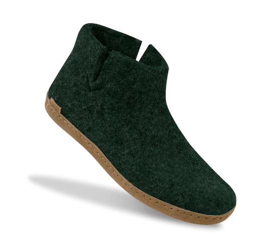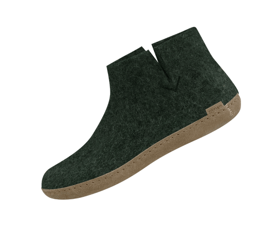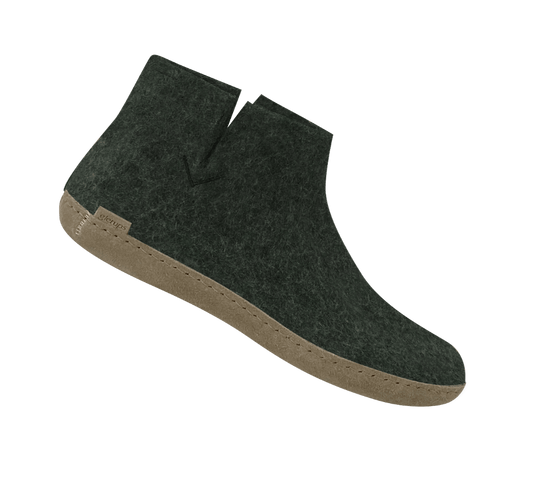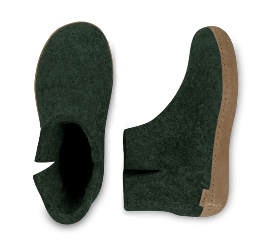 Felt ankle boot of 100% pure natural wool in the classic color forest with a sole of soft vegetable tanned calfskin.